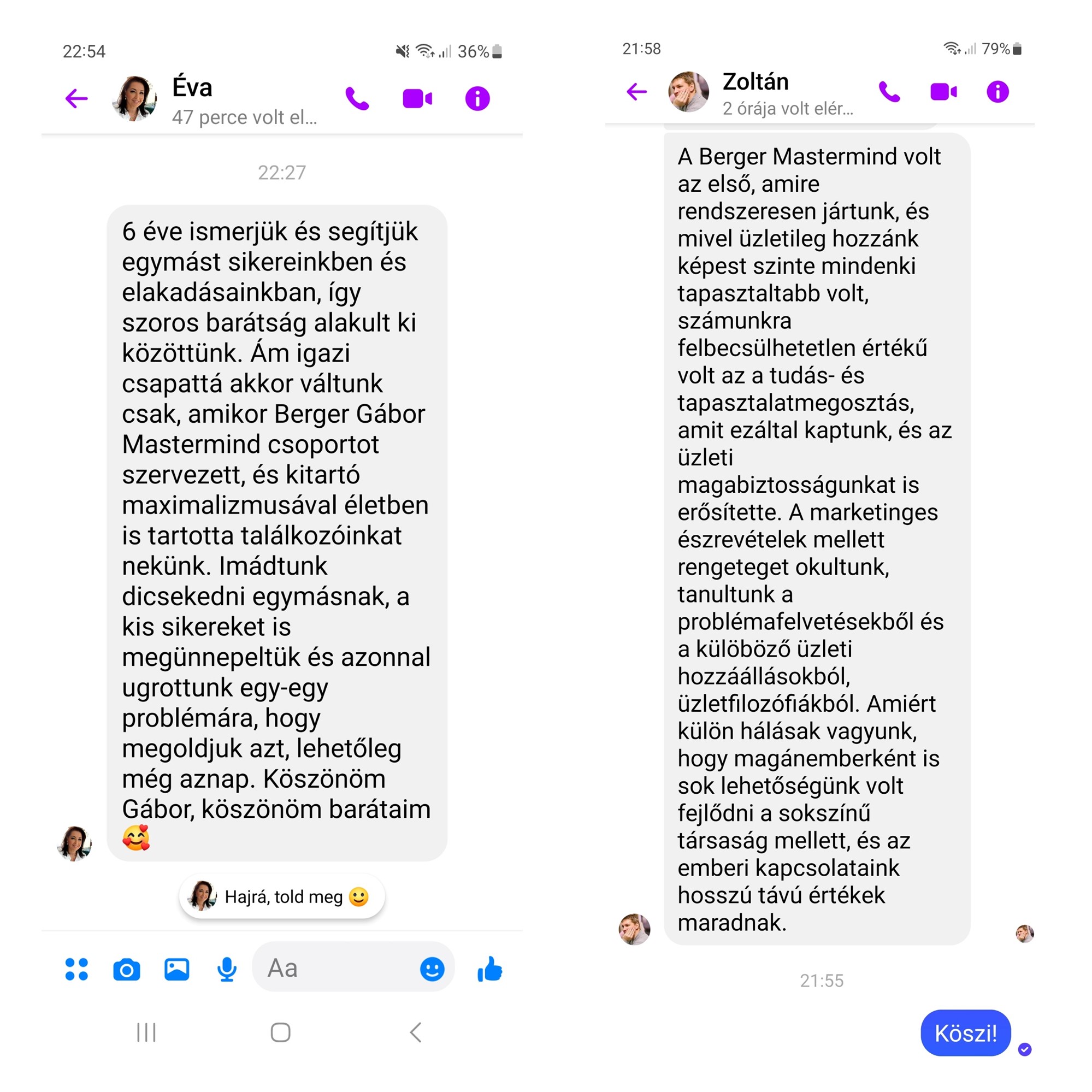 Annak ellenére, hogy a mastermind keretei között mindössze havonta egyszer találkozunk, számos tagunk között olyan kapcsolat alakult ki, ami túllép a csoport keretein. Ezek a vállalkozó - vállalkozó közötti barátságok új emberi dimenziót nyithatnak meg a számodra is.