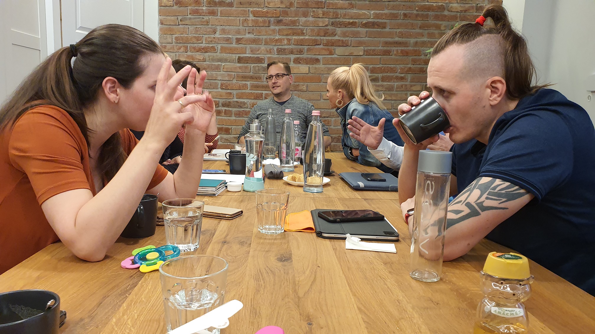 3,6 méter tölgyfa asztal, 10 db kényelmes szék, hangulatos téglafal, tv ha prezentálni kell, gyors internet, nyomtatási lehetőség, korlátlan jó minőségű kávé, és hűtött, műanyagmentes tisztított víz. Saját wc, és zuhanyzó a kerékpárral érkezőknek.